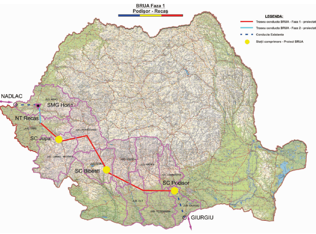 Conducta BRUA de pe teritoriul României este un segment din proiect, deținut, administrat și controlat de către Transgaz. Transgaz este singurul operator al sistemului național de transport de gaze. Deși are un pachet de acțiuni listat la bursă, acționarul majoritar este statul român.