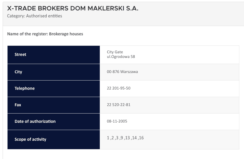 Având sediul în Polonia, XTB este reglementată de Autoritatea Poloneză de Supraveghere Financiară.