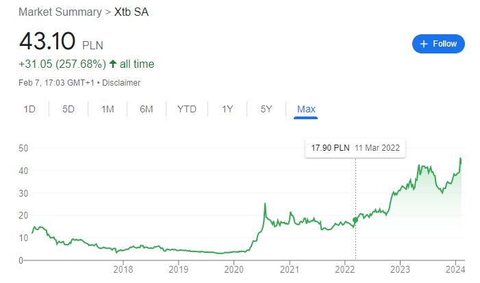 În plus, XTB este listat din 2016 la bursa din Polonia cu tickerul XTB.
