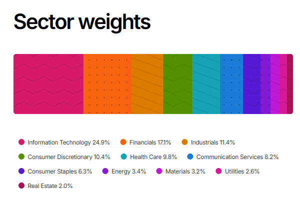 După cum se poate vedea, are o înclinație puternică spre tehnologie și apoi are o pondere în sectoarele defensive (financiar, sănătate, consum). De asemenea ponderea companiilor implicate în dezvoltarea sau implementarea inteligenței artificiale este din ce în ce mai mare.