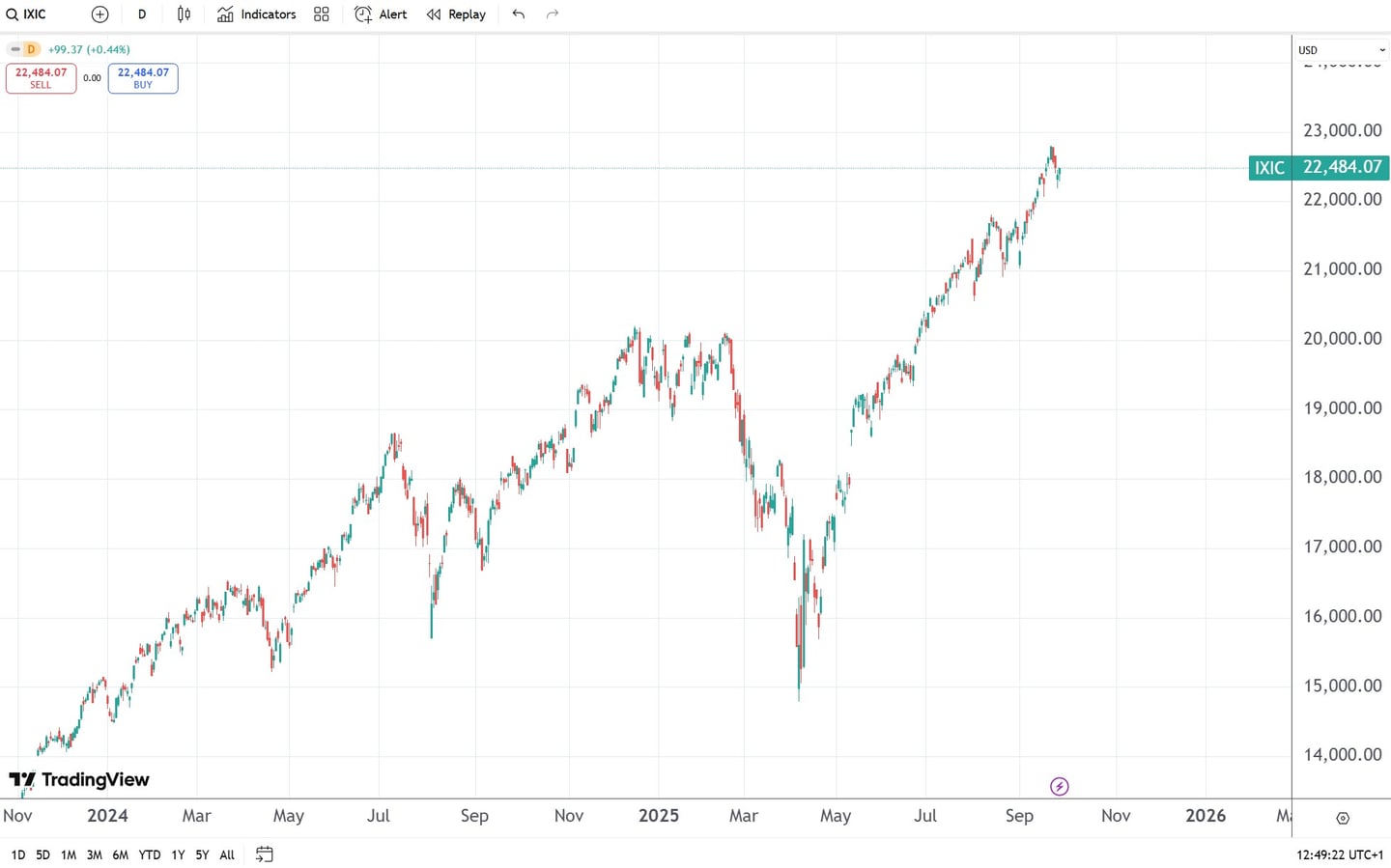 Bursa Nasdaq a fost creată în 1971 ca o alternativă la Bursa din New York (NYSE). Deși Nasdaq este cunoscută acum pentru că găzduiește multe companii de tehnologie, inițial nu a fost creată exclusiv pentru companiile de tehnologie. A devenit, de-a lungul timpului, o alegere populară pentru astfel de companii, datorită sistemului său inovator de tranzacționare și a cerințelor de listare mai flexibile comparativ cu NYSE. Observăm că acesta este un indice foarte mare, precum S&P 500, care include cele mai mari 500 de companii listate la bursă din SUA.