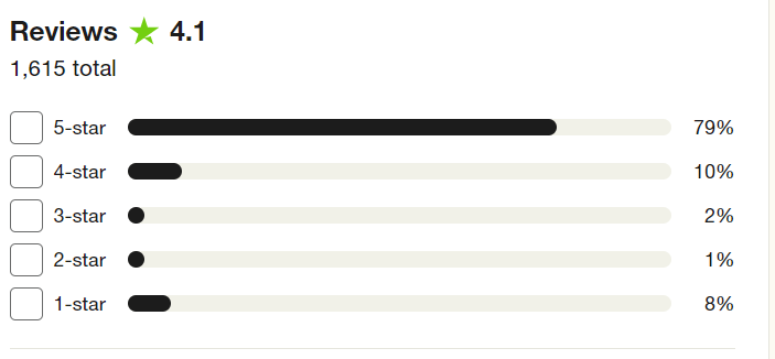 Compania are un scor de 4,1 din 5 pe Trustpilot din peste 1.600 de recenzii.
