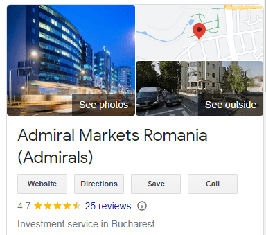 Admirals este o companie care se ocupă cu intermedieri financiare și care a fost înființată în 2001. Are o prezență globală și oferă acces la multe active atât pentru investiții pe termen lung (active directe) cât și pentru tranzacționare pe termen scurt (CFD-uri).