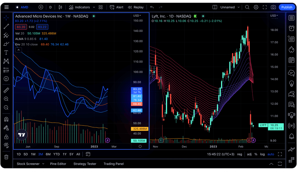 TradingView este o platformă de tranzacționare multi-broker care permite nu doar execuția ordinelor de cumpărare și vânzare, ci și analiza tehnică detaliată. Cu informații variate și actualizate, utilizatorii pot pregăti tranzacțiile cu încredere.