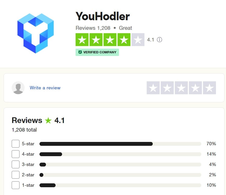 Dacă ne uităm pe Trustpilot, vedem că are o calificare medie excelentă de peste 4 stele din 5, cu 70% dintre utilizatori evaluând cu 5 stele exchange-ul, fiind fără îndoială un semn de sănătate și satisfacție a clienților din partea YouHodler.