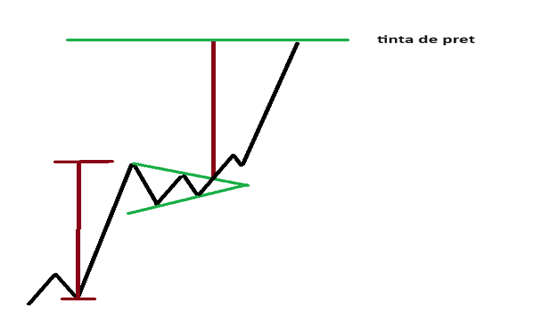 Pentru a calcula proiecția pe care ar putea-o avea piața odată ce semnalul ascendent este activat, este suficient să ne uităm la dimensiunea catargului și să o proiectăm în sus din zona în care prețul începe să iasă din triunghi.