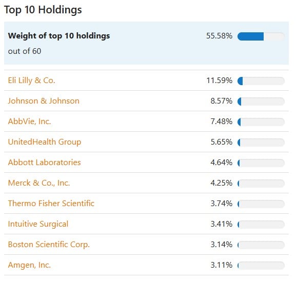 Acest ETF urmărește indicele S&P Health Care Select Sector care caută să urmărească întregul sector al sănătății din SUA.